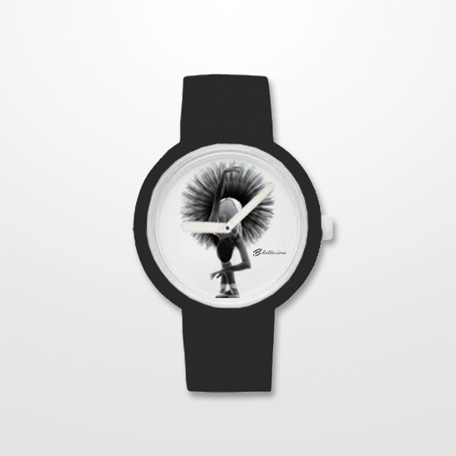 It is time to dance! With its plastic bracelet and its fancy face, this Forever B. watch will keep you from ever being late to your dance class! This black watch features a black and white picture of a ballerina in the 5th position on the dial