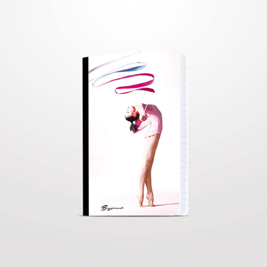 Keep track of your goals and dreams of gymastic and make them come true! This notebook features a colourful photo of a gymnast on the white cover looking up with her ribbon and has a black bookbiding
